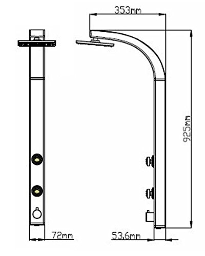 - Das Duschpaneel ist aus Hochwertigem ABS Kunststoff in Silber. Maße vom Duschpaneel 925mm x 72mm x 54mm Armauslage: 353mm